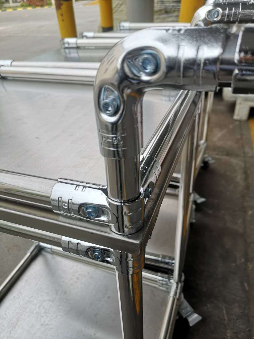 不銹鋼線棒接頭材質為冷板沖壓鍍鉻,顏色和不銹鋼顏色一樣,組裝方便,可重復使用。