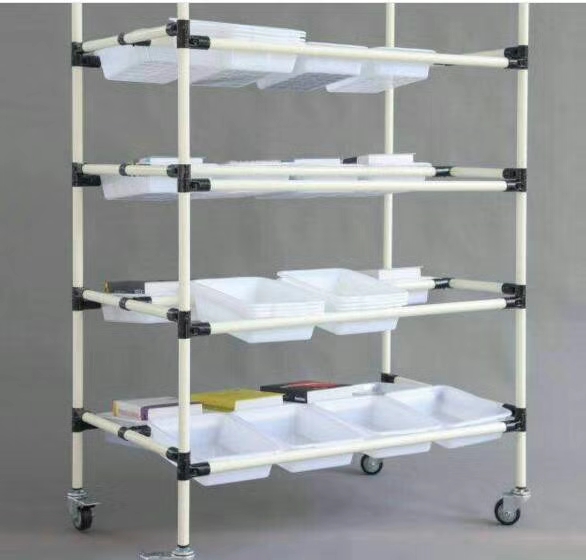 鄭州恒川精益管周轉車主要由柔性線棒管材、線棒金屬接頭、層板和腳輪組成。有些企業為了防止產品刮花,還會給線棒管材包上一層EPE珍珠棉或者塑膠。線棒周轉車的款式及規格都可根據企業的實際需求設計組裝。